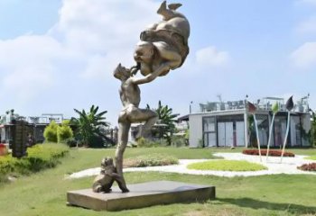 作為景觀雕塑,它旨在為戶外公共空間注入生活氣息與藝術(shù)活力,成為人們休閑場景中的視覺亮點,喚起對童年的美好回憶。采用銅雕塑材質(zhì),銅的質(zhì)感厚重且富有歷史感,能很好地塑造出人物的形態(tài)與細節(jié),歷經(jīng)歲月也能較好保存,適合長期放置在戶外環(huán)境中。從趣味雕塑的角度,設(shè)計聚焦孩童掰手腕這一充滿童真與競技感的游戲場景。兩個孩子在樹樁上全神貫注比拼力氣,面部神情專注又帶點較勁的可愛;一旁背著竹簍的孩子俯身關(guān)注,仿佛也沉浸在這場 “較量” 中,姿態(tài)生動自然。周圍搭配的陶罐等物件,更增添了生活場景的真實感,讓整個雕塑充滿故事性與趣味性,仿佛將一段無憂無慮的童年時光定格在公共空間里,能瞬間勾起觀者的童年記憶,帶來輕松愉悅的感受,使藝術(shù)與大眾的生活體驗緊密相連,成為大家樂于觀賞、互動甚至打卡留念的對象。<br />